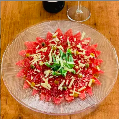 Dry Aged, sliced in thin slices with a touch of mustard vinaigrette, parmesan cheese and arugula.